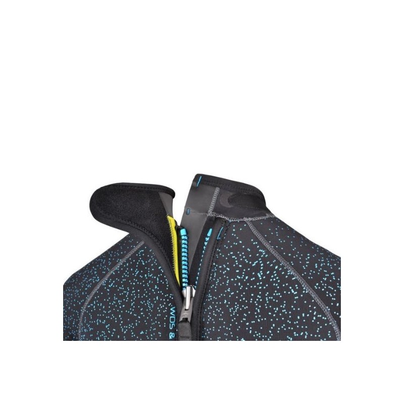 Elaskin 8.8 Stretch-Panel im Lendenwirbelbereich erhöht die Flexibilität um den Rückenreissverschluss und verbessert dadurch den Komfort, besonders beim Bücken und beim Montieren und Anlegen der Ausrüstung an der Oberfläche