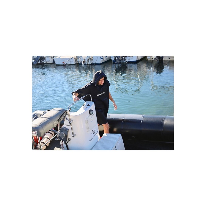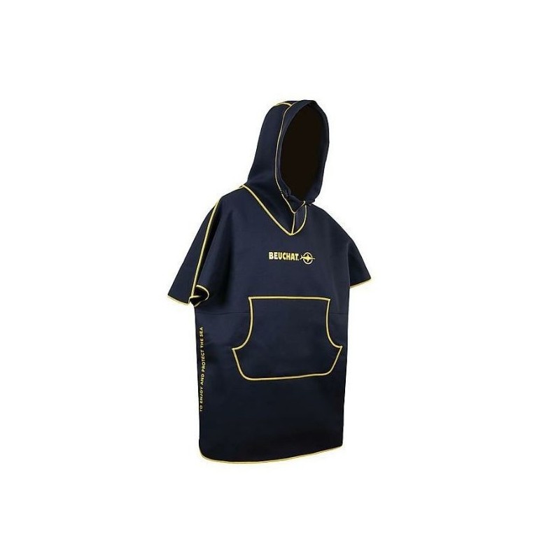 Der Beuchat Poncho mit Kapuze aus 1 mm Neopren, um sich nach dem Tauchen, Apnoen, Schwimmen, Schwimmen in kaltem Wasser... leicht umzuziehen
