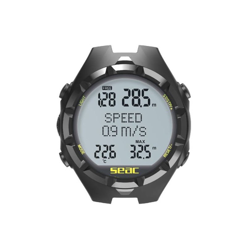 - Tauch-/Aufstiegsgeschwindigkeit, Temperatur, gesamte Tauchzeit und Tiefe, alles auf einem Bildschirm