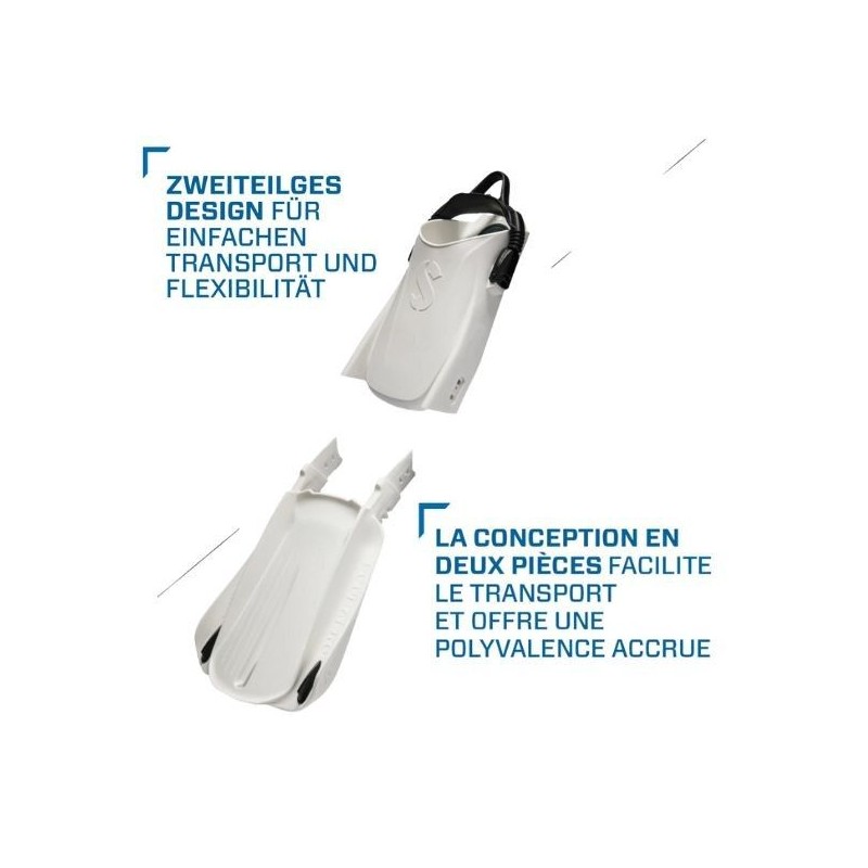 Flossenblatt und Fussteil sind separat mit einem robusten Socket-Lock-System verbunden, das die einfache Montage und Demontage ermöglicht