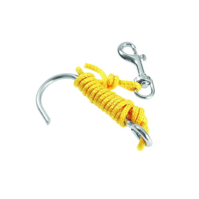 Riffhaken mit Seil und Karabiner zum Einhängen bei starker Strömung
