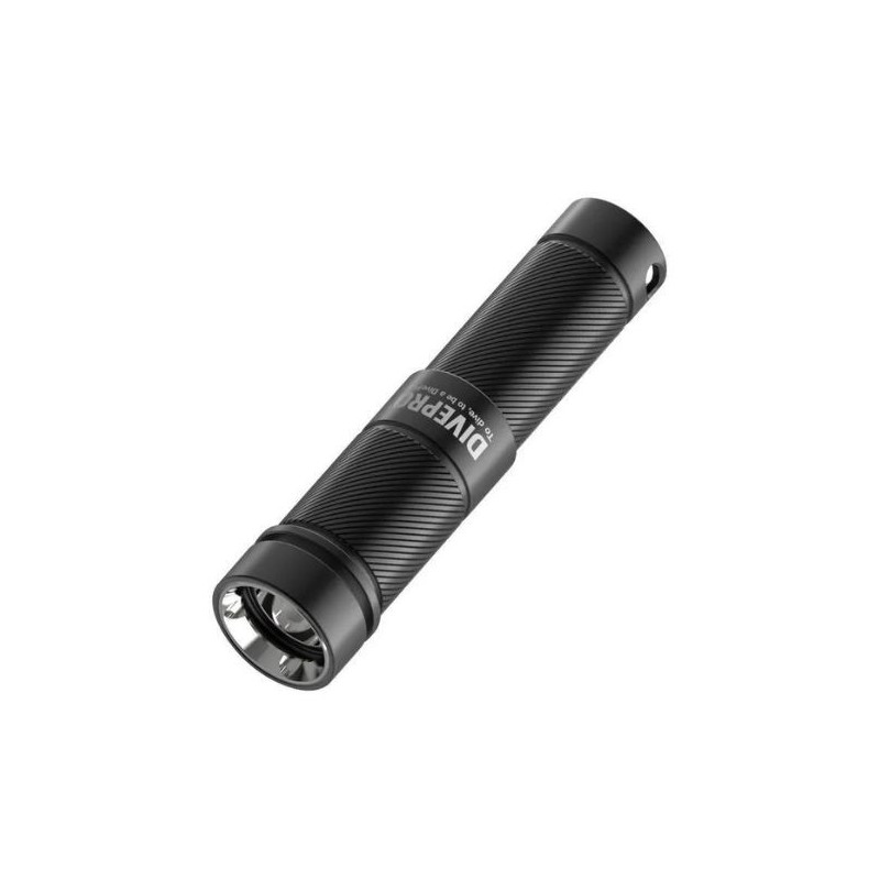 Die Mini-LED-Notfalllampe DIVEPRO D1 hat eine CREE XP-G2-LED mit 220Lm, einen hochkonzentrierten 7°-Winkel und einen Drehschalter