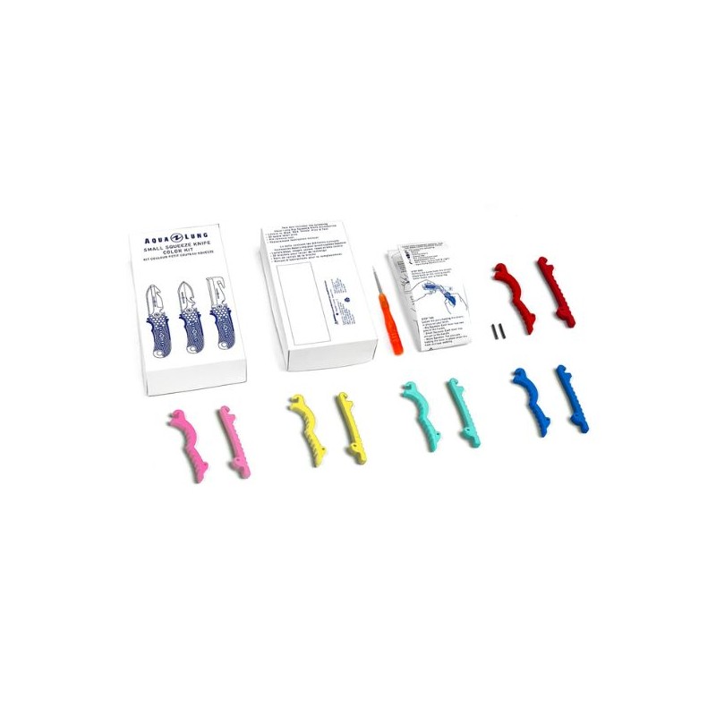Dieses Komplettset ist mit allen neuen Aqualung Small Squeeze-Messern kompatibel und ermöglicht es Ihnen, die Hebel schnell auszutauschen, um einen einzigartigen Look zu erzielen und Ihre Ausrüstung besser erkennen zu können