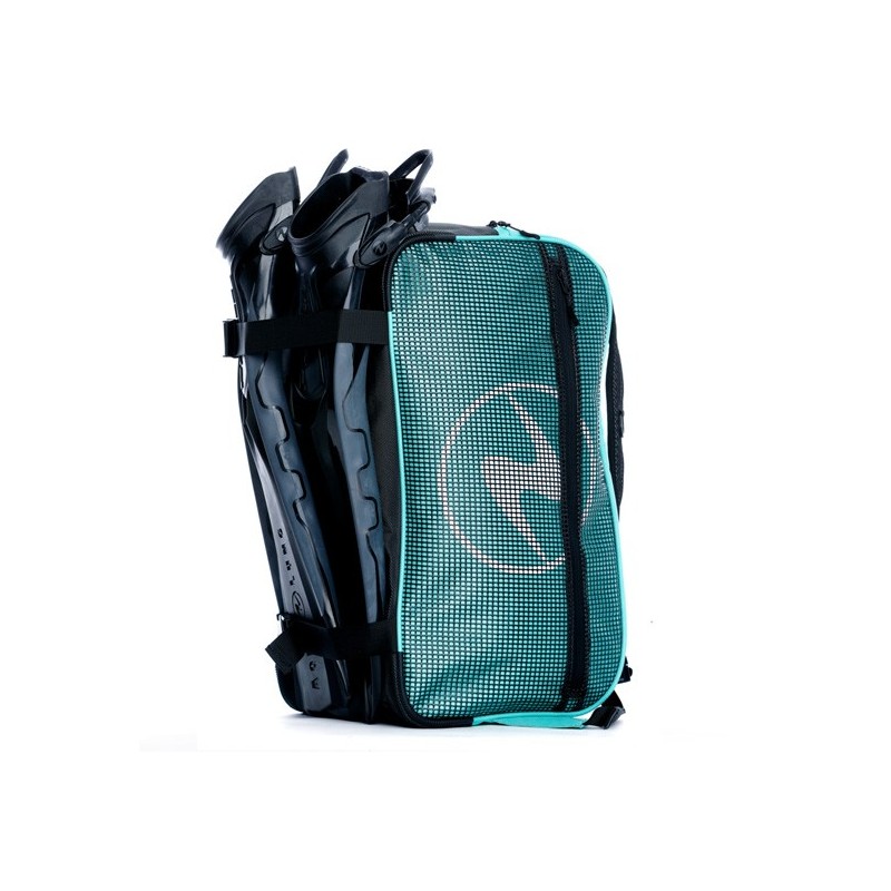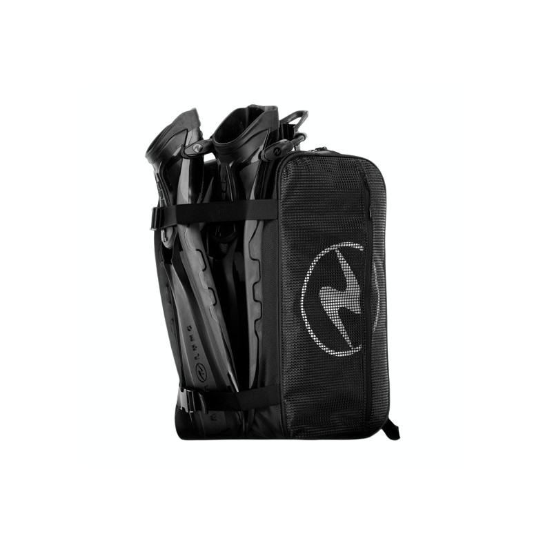 Die Riemen auf der Rückseite der Tasche sichern Flossen jeglicher Grösse und es gibt das wichtige Brillenfach für Ihre Utensilien