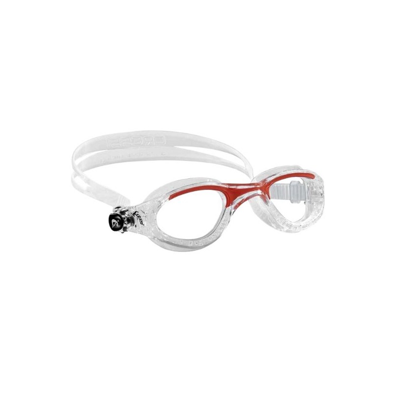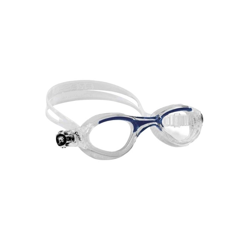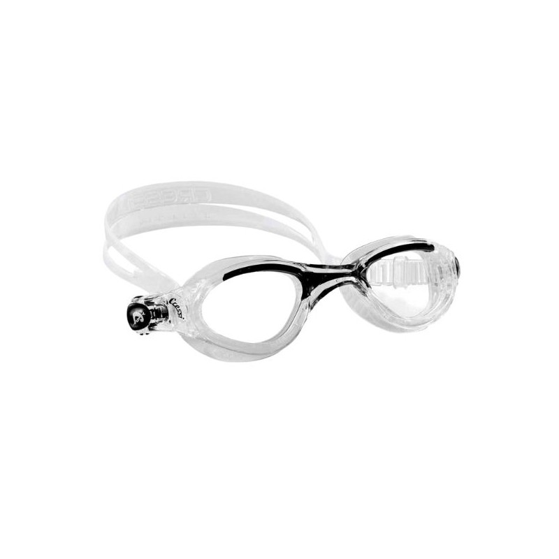 Schwimmbrille mit getrennten Linsen, deren herausragendes Merkmal aus der elastischen Innenstruktur besteht, dank der sie sich perfekt an die meisten Gesichtsprofi le anpasst