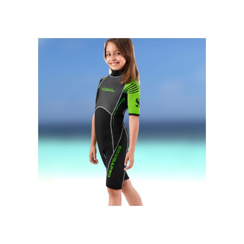 Der Scubapro Rebel Shorty für Kinder ist aus hochwertigem 2,5 mm Neopren gefertigt und hat eine kindgerechte Passform für Mädchen und Jungen