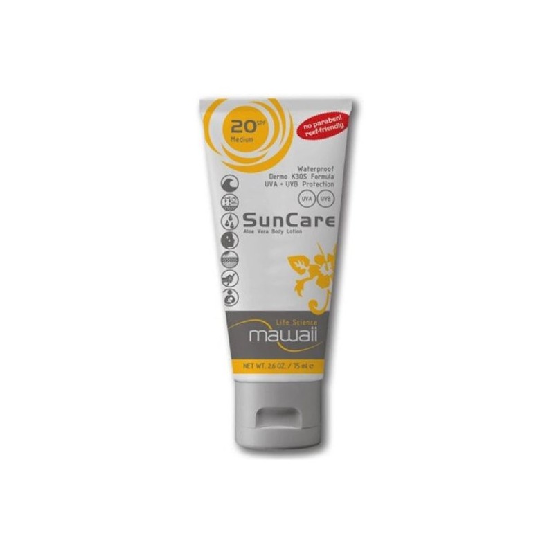 Die Sonnencreme bietet aktiven Schutz vor UV-Strahlen und Umweltgiften wie Ozon, Schwefeldioxid, Stickoxid und freie Sauerstoffradikale. Ihre Dermo-K3OS-Formula sorgt darüber hinaus für aktiven Zellschutz und fördert die Zellregeneration der Haut. Gleichzeitig pflegt die Creme mit Vitaminen und Feuchtigkeit. Selbst mit hohem Lichtschutzfaktor lässt sich die Textur angenehm auftragen, die Poren werden nicht verstopft und die Haut kann atmen. Die SunCare von mawaii ist für jeden Hauttyp und somit auch für sensible Haut von Kindern oder Allergikern geeignet.