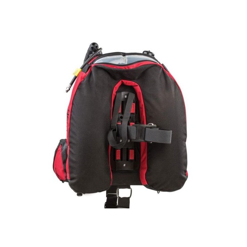 Es verfügt über einen Rückenauftrieb vom Typ "Hufeisen", der im Prinzip der Tec-Jackets sehr effektiv für die Stabilisierung ist, und integriert gleichzeitig seitliche Bleitaschen mit einem Fassungsvermögen von 4 kg pro Tasche