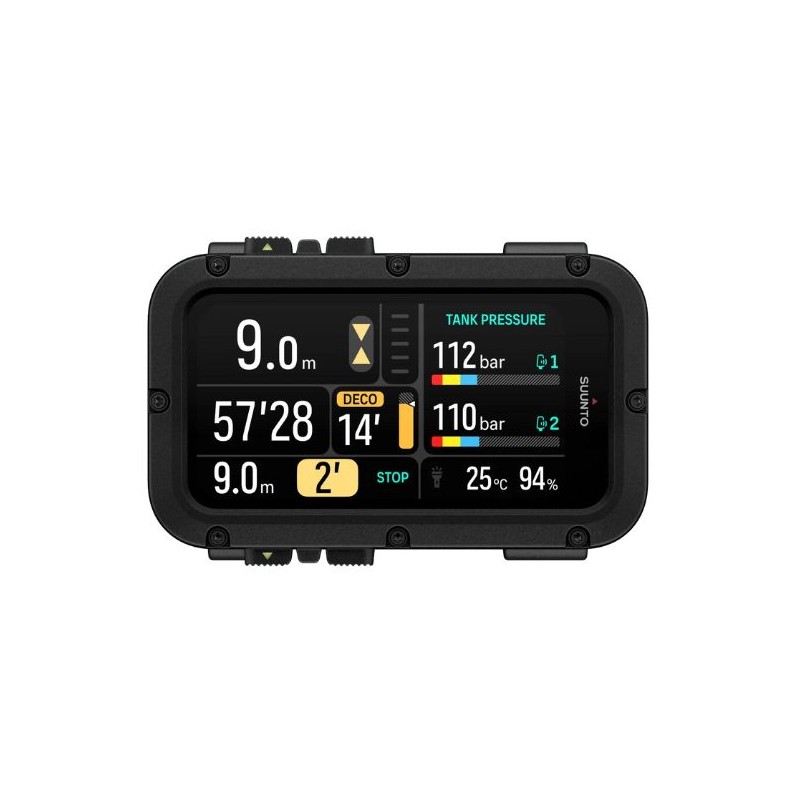 Die drahtlose Überwachung des Flaschendrucks liefert Tauchern auf einen Blick Echtzeit-Gaswerte und Verbrauchsdaten. Dank der Unterstützung von zwei Sendern können Taucher, die sich für eine seitliche Montage entscheiden, den Füllstand beider Flaschen gleichzeitig leicht kontrollieren, während klare, farbcodierte Anzeigen sie während des gesamten Tauchgangs sofort informieren.
