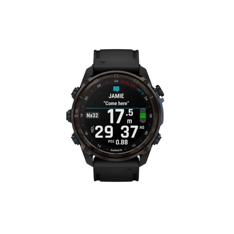 So kannst du deine Tauchdaten jederzeit überprüfen und anpassenTaucherorientiertes DesignMit seinem hellen, 1,2-Zoll grossen AMOLED Touchdisplay, Saphirglas sowie einem für Tauchgänge bis zu 200 Meter Tiefe geeigneten Gehäuse ist der smarte Tauchcomputer für spektakuläre Deep Dives bereitLange AkkulaufzeitBleibe noch länger unter Wasser dank einer Akkulaufzeit von bis zu 30 Stunden im Tauchmodus und bis zu 10 Tagen im Smartwatch-ModusLuminanz-ModusUm die Lesbarkeit zu unterstützen und die Nachtsicht beizubehalten, sorgt ein Umgebungslichtsensor bei schwachem Licht für ein grünes Leuchten auf dem DisplayTauchkompassIntegrierte ABC-Sensoren, darunter ein Unterwasserkompass