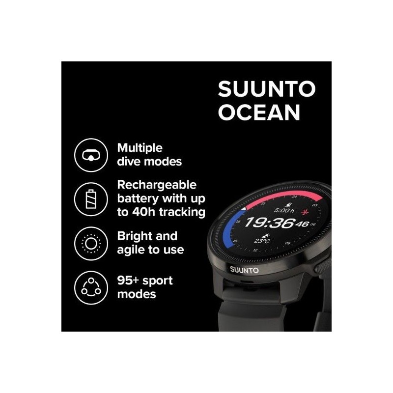 | Suunto Ocean ist mit ihrem modernen Finnischen Design und den integrierten Premiumfunktionen für Tauchgänge, Sport und alles dazwischen der perfekte Begleiter für alle deine Abenteuer. | ||