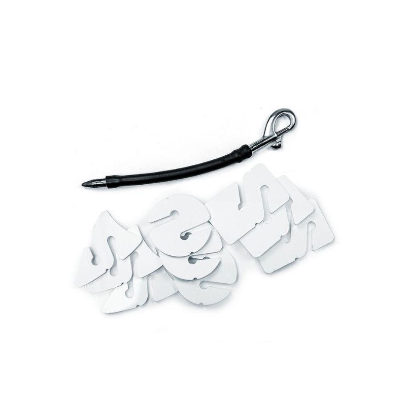 Navigationsset «Intro To Cave» Training oder Tauchgänge – beinhaltet ein Navigations-Kit (Silber), 3 REMs, 3 Cookies and 3 Line Arrows (Weiss)