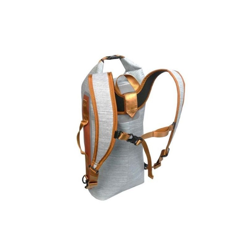 Der zum Gehen bequeme Rückenträger ist abnehmbar, die Vorderseite hat ein Gummiband, damit man nach dem Regen seine Windjacke aufhängen kann