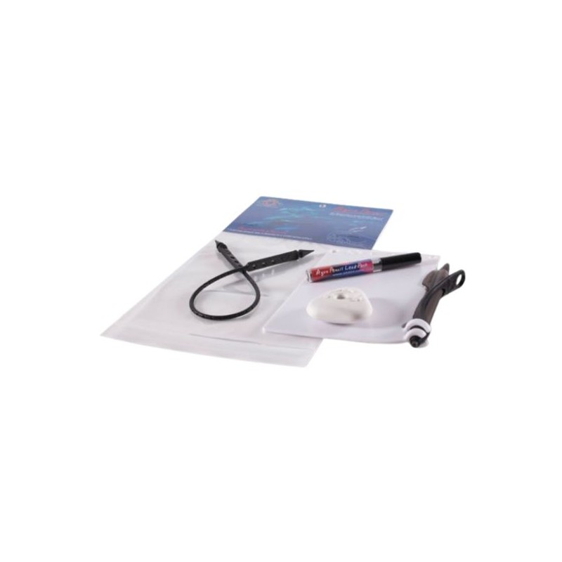 Das Kit enthält eine Schreibtafel, Schreibstift mit Ersatzminen, Stifthalterung und einen Radiergummi