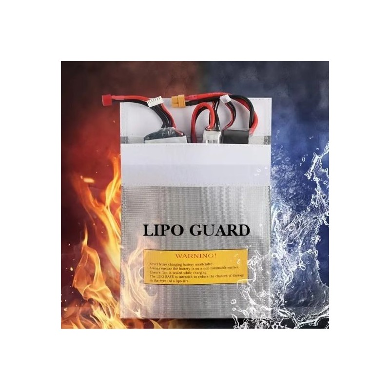 Diese feuerfeste, wasserdichte und explosionsgeschützte LIPO GUARD Tasche für Lithiumbatterien wird für die sichere Lagerung und den Transport Ihrer Batterien verwendet