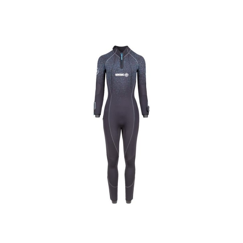Grand Zip dorsal « G-Lock plus » (monopièce col) avec curseur métal et sous-patte au profil embossé Water Dam System pour une étanchéité accrue (brevet Beuchat) Zip poignet et cheville Renforcement du néoprène à l'extrémité de tous les Zips pour éviter tout risque de déchirure si le plongeur force en tirant sur les curseurs