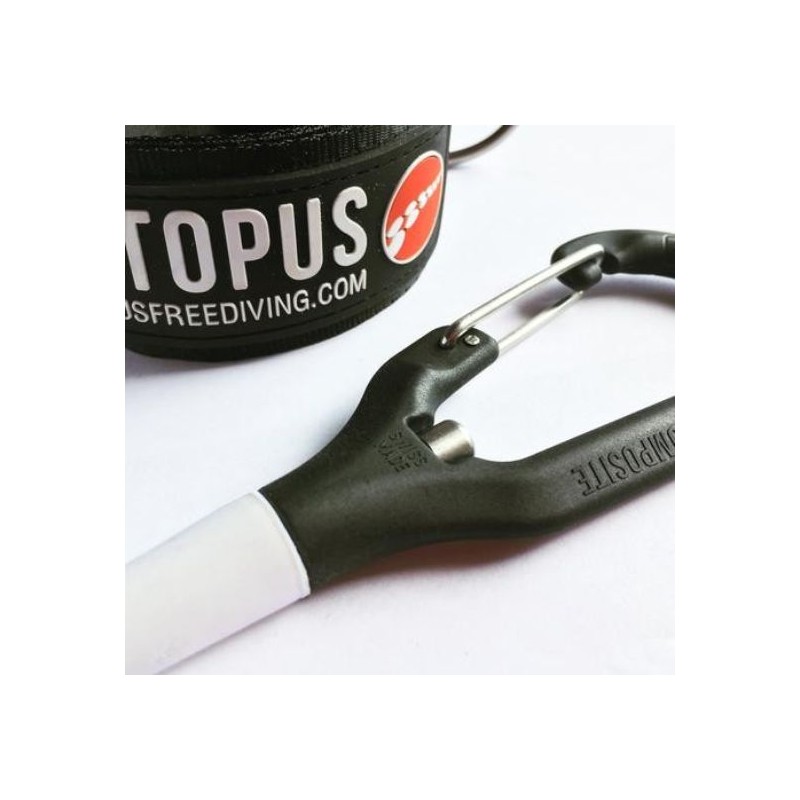 Composants de haute qualité, du mousqueton en polymère de carbone super-léger, au câble en acier inoxydable revêtu de plastique de 120cm et d'un bracelet velcro en polyester résistant à l’eau de qualité marine.