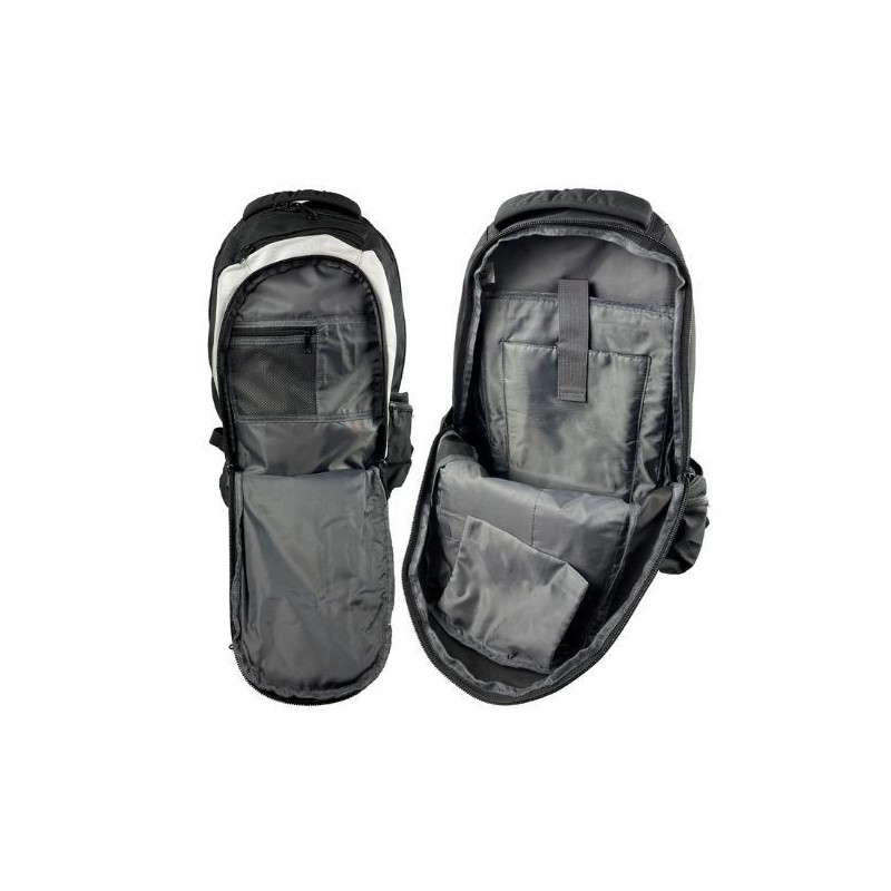 Deux autres sections zippées sur le devant, une petite poche latérale zippée et des poches latérales externes de chaque côté du sac