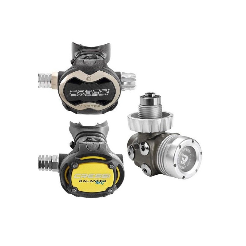 Le 1er étage Cressi T10-SC associé au deuxième étage Cressi Master, qui comprend un échangeur de chaleur interne, est un choix excellent pour les plongeurs qui explorent les environnements en eau froide les plus extrêmes
