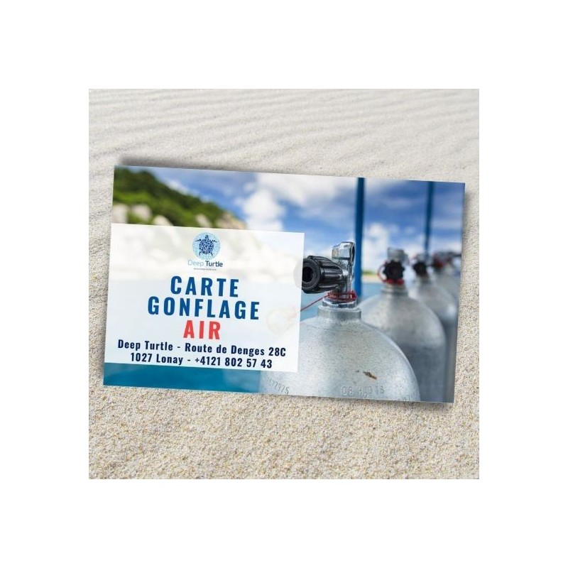 Cette carte vous permet de venir remplir votre bouteille de plongée à l'air durant les heures d'ouverture du magasin Deep Turtle à Lonay