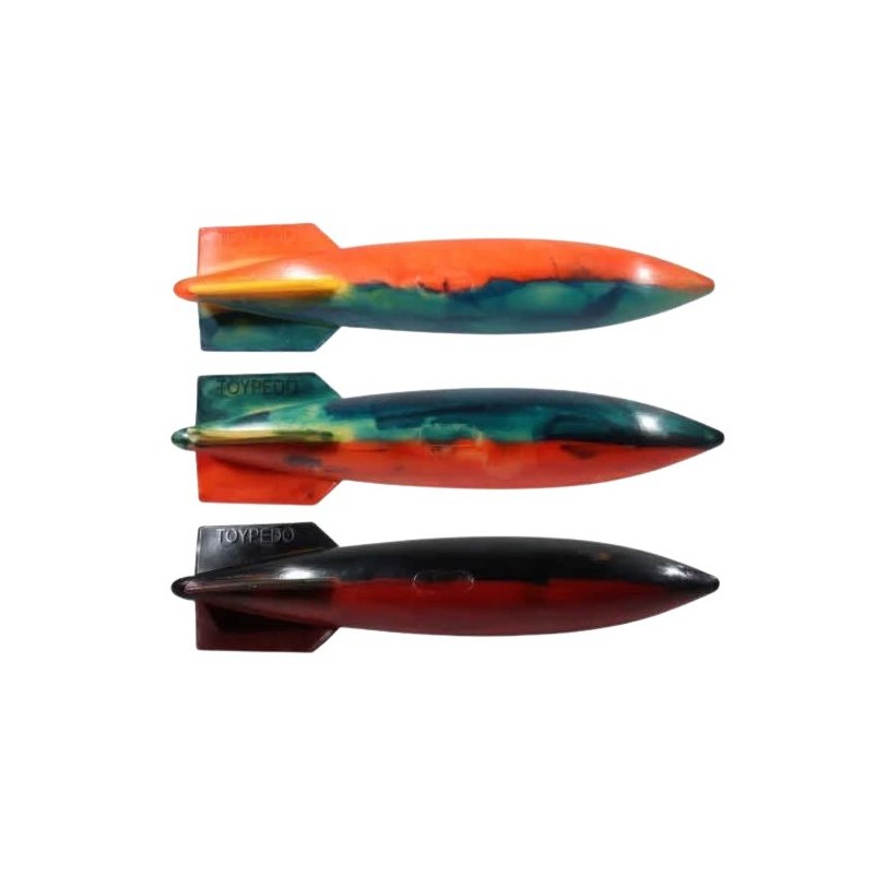 Le Toypedo mesure environ 28 cm de long et est en caoutchouc plein, glisse super bien sous l'eau et est un outil formidable pour apprendre aux plongeurs la flottabilité