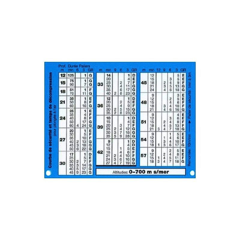 CMAS Table Bühlmann 0-700 mètres d’altitude (bleu)