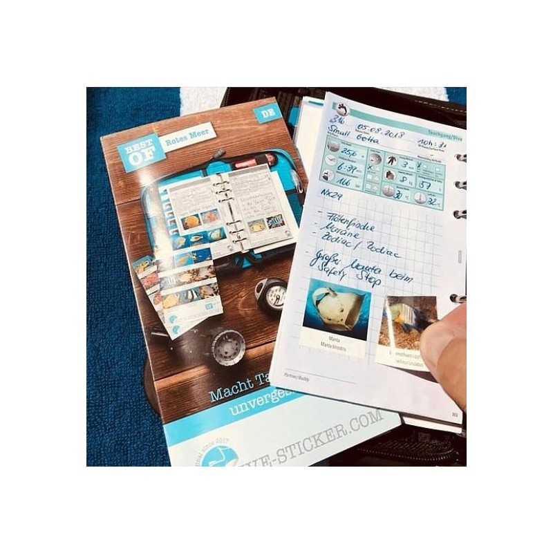 D'une taille de 33 x 34 mm, les autocollants trouveront facilement leur place dans le carnet de plongée et vous rappelleront tant de bons souvenirs de plongée