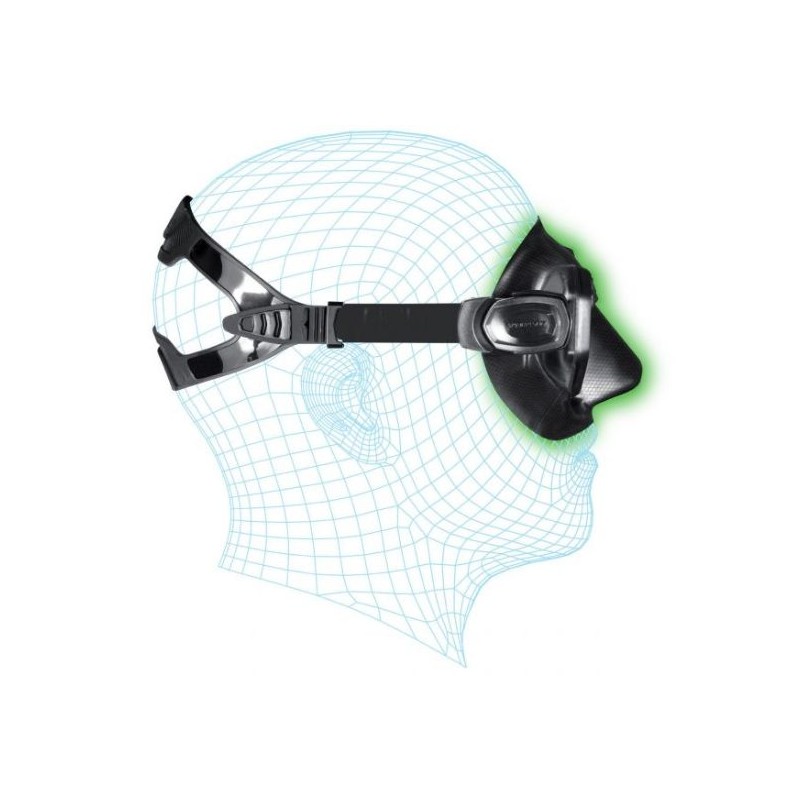 Ceci permet de rapprocher les verres des yeux avec comme résultat une baisse de plus de 30% du volume interne par rapport à un masque d’apnée classique