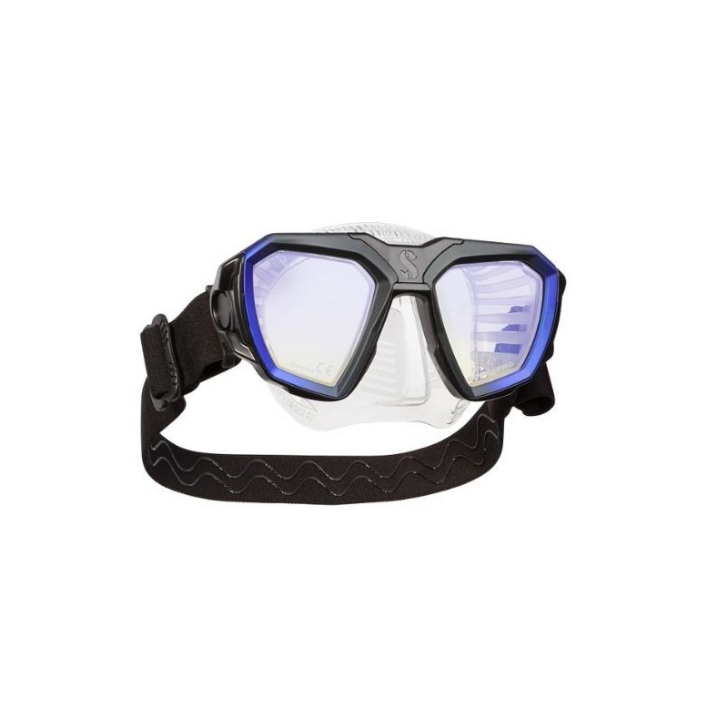◊ Livré dans une boîte de transport en tissue moulé durable : masque livré avec un cerclage bleu/noir + un cerclage noir, un adaptateur de fixation pour ordinateur de plongée tête haut Galileo HUD ainsi qu’une sangle Comfort Strap entièrement noire