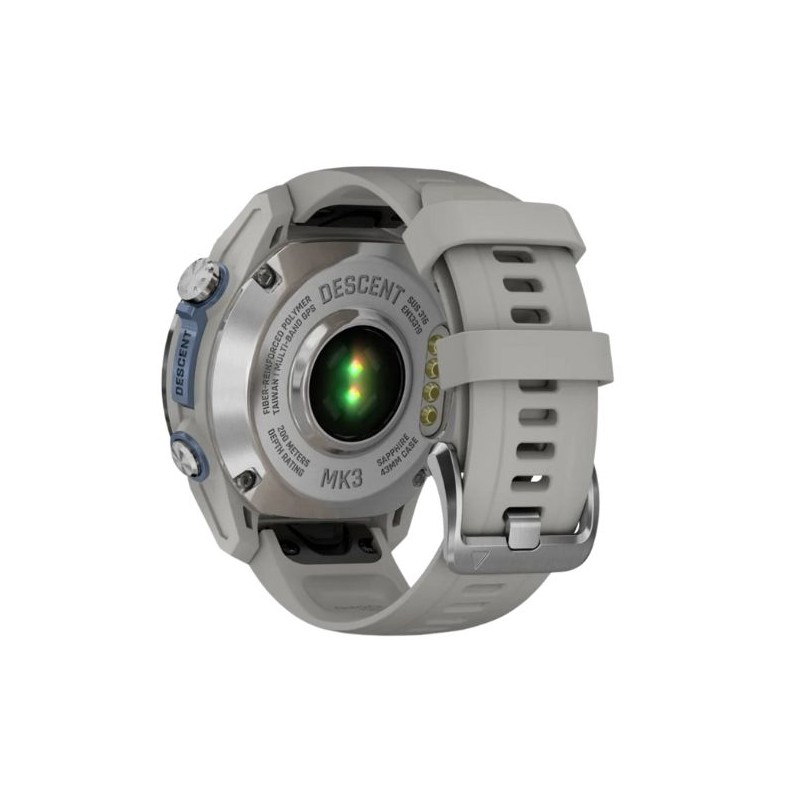 Avec son écran couleur AMOLED 1.2″ lumineux, son verre en cristal de saphir, son boîtier étanche pour des plongées jusqu'à 200 mètres et ses boutons inductifs métalliques étanches, cet ordinateur de plongée est conçu pour plonger toujours plus profond