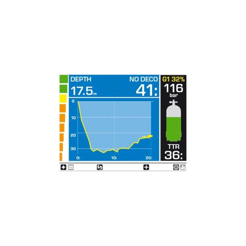 | Fonctions de plongée | Air, Nitrox, Multigaz, Profondimètre, Trimix, Jusqu'à 5 gaz |