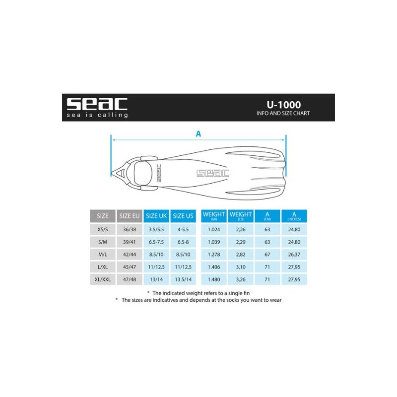 Les palmes SEAC U-1000 Sling Strap sont destinées à ceux qui exigent performances de haut niveau et flottabilité maîtrisée