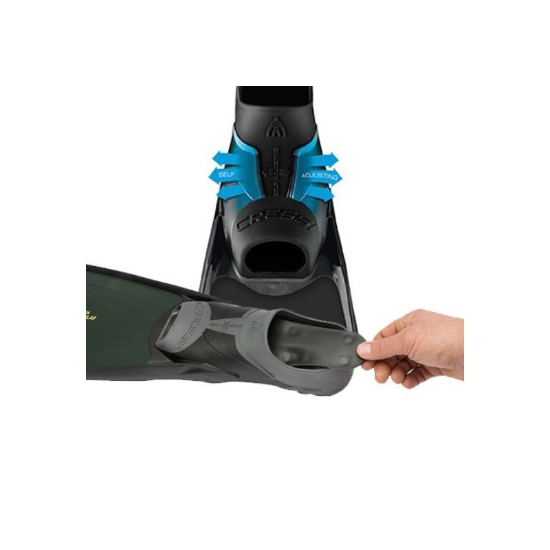La palme d'apnée Cressi Gara Modular Impulse complète la gamme de palmes Cressi, intégrant un angle de pli de 29 degrés, qui permet d’augmenter encore la performance dynamique du battement