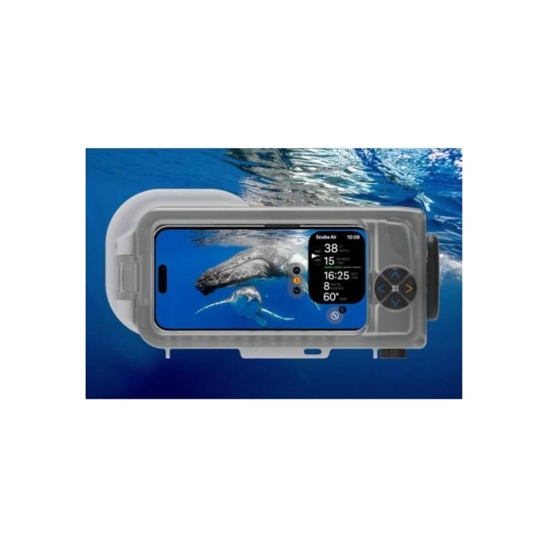 Le boîtier permet aux plongeurs d'utiliser toute la gamme de fonctions de retouche photo de l'iPhone, ainsi qu'un ordinateur de plongée comparable à la technologie informatique la plus récente pour la plongée de loisir