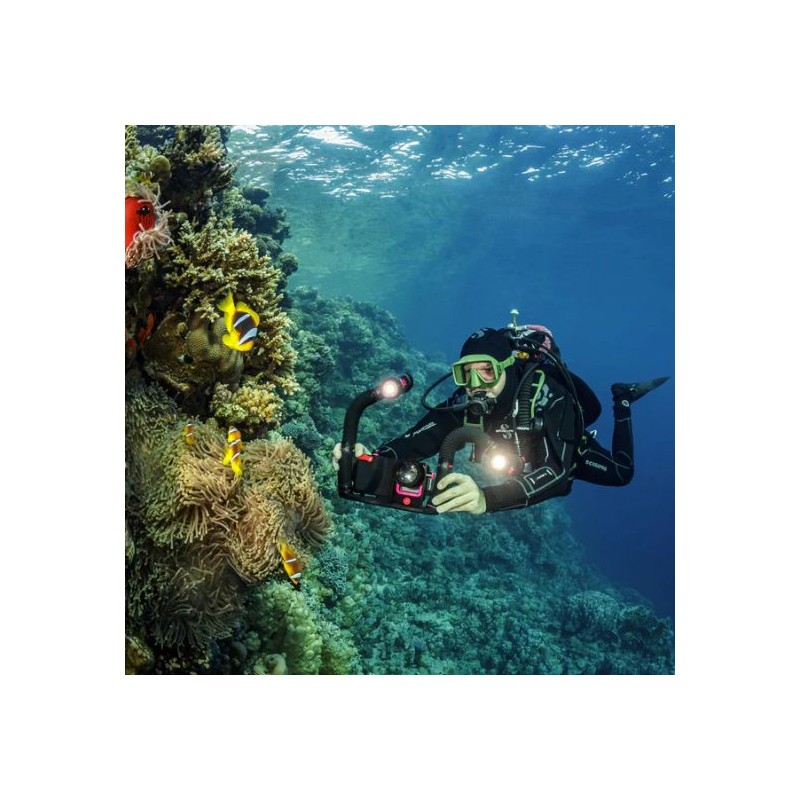 Montez deux flashs ou lumières sur votre caméra sous-marine pour doubler la luminosité et réduire les ombres