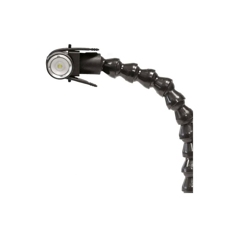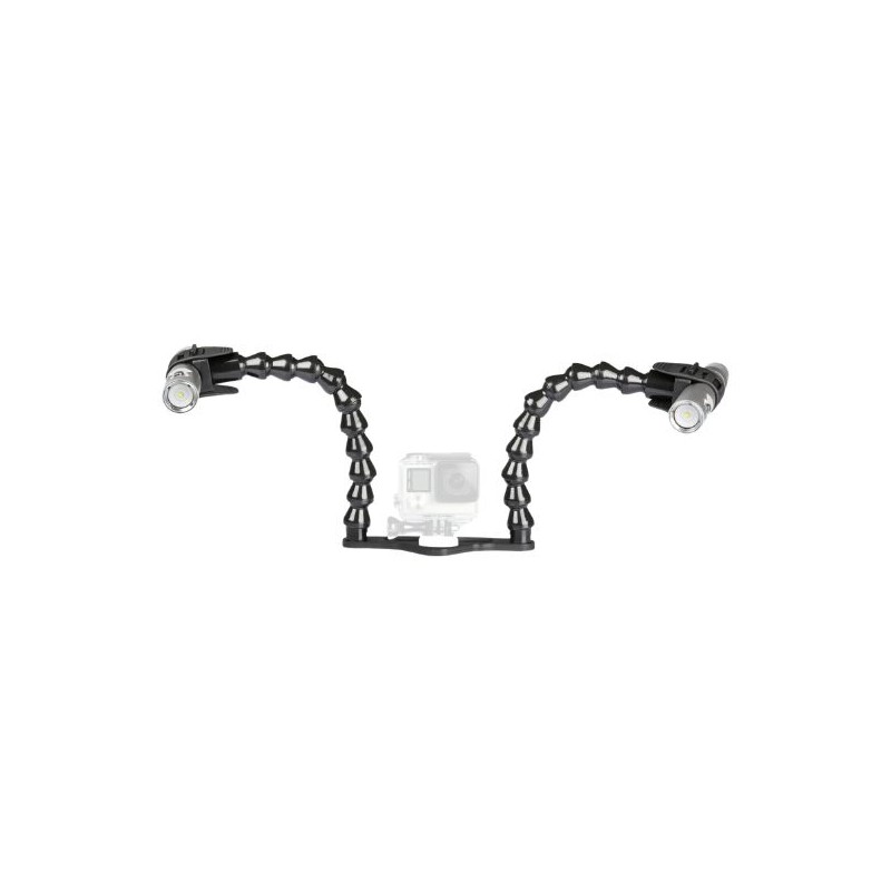Ce kit complet comprend deux puissantes torches de 1000 lumens, un support en aluminium pour ton appareil photo et des bras flexibles pour des angles d'éclairage parfaits