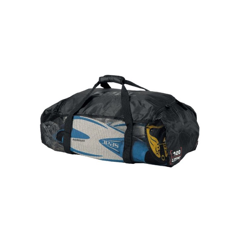 Seac Equipage Net est un sac à équipement en maille mesurant 70 x 45 x 30 cm lorsqu'il est ouvert et 46 x 26 x 1 cm lorsqu'il est fermé ; il s’enroule et devient un sac pratique avec œillet
