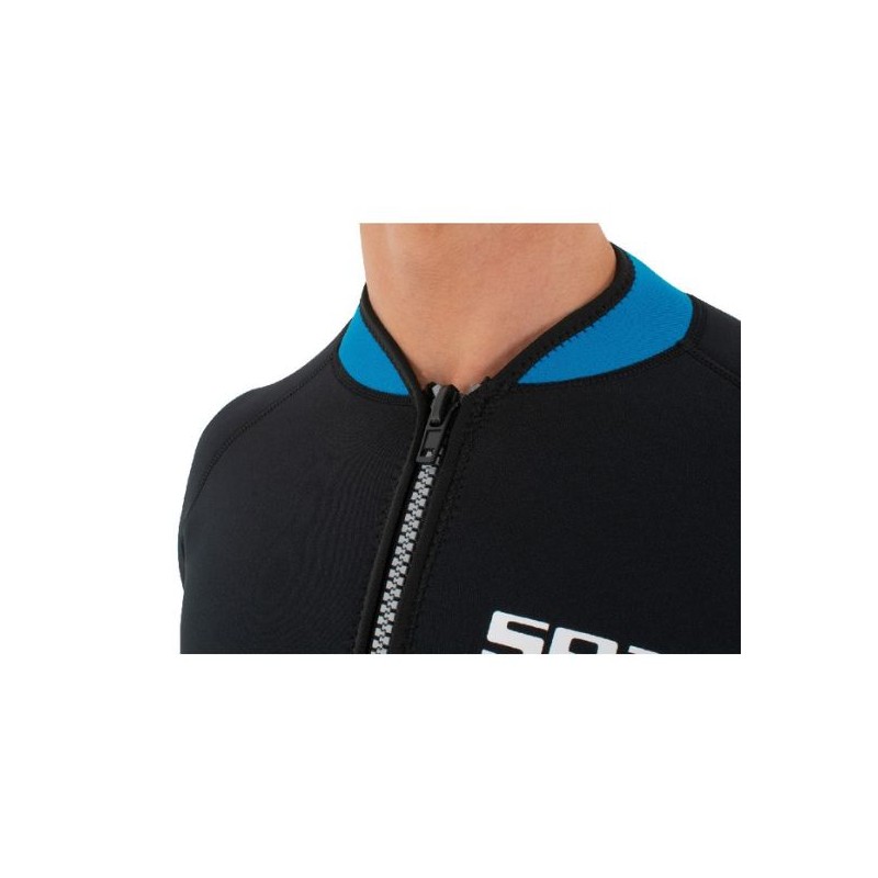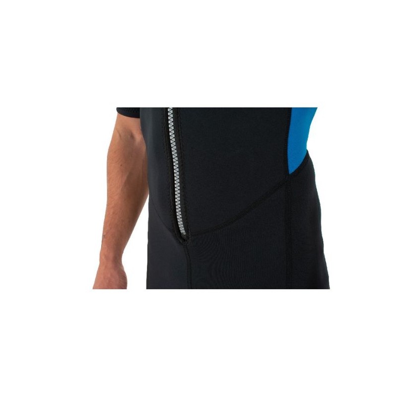 Le shorty Seac Look 2,5 mm, à double doublure, possède une fermeture éclair frontale sur tout le torse avec un panneau intérieur pour réduire les infiltrations et des coutures plates pour éviter les frottements